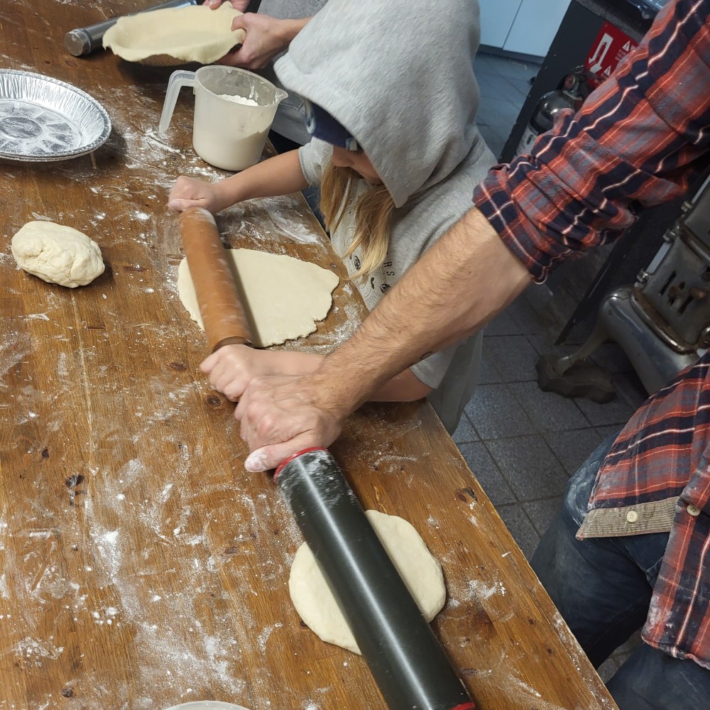 Pour perpétuer des traditions, surtout familiales, c’est embêtant si on ne fait pas d’enfant. 8 ans plus tard, je profite du bonheur de travailler aux côtés de mes enfants aussi. Il y a quelques semaines, on a eu la chance incroyable d’aller faire 83 tourtières, 250 biscuits de Noël et 35 rouleaux de pet de soeur pour le grand party de Noël.